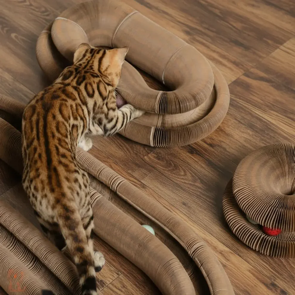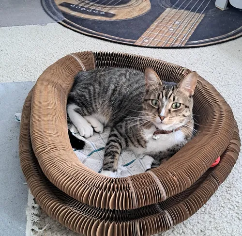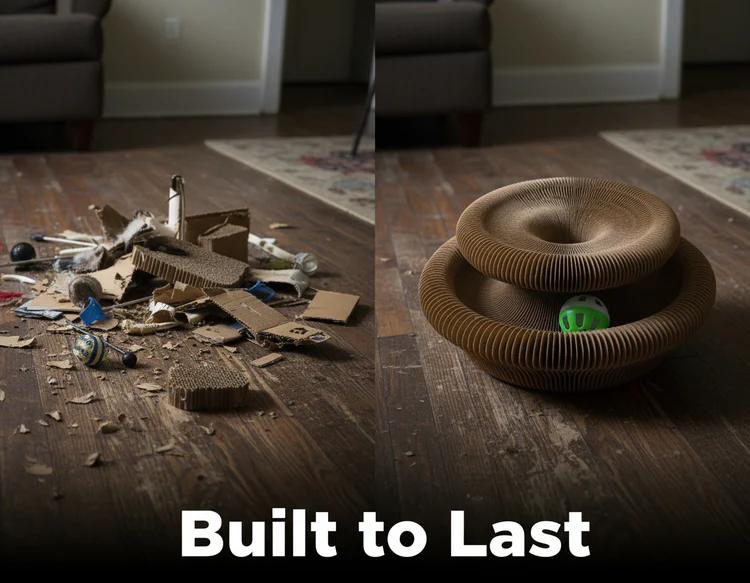 Built with high-density corrugated cardboard and a precision-cut honeycomb structure, Hatmeo withstands aggressive scratching and daily play.