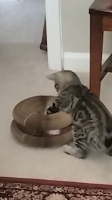 Hatmeo’s accordion design continuously expands and contracts, keeping your cat locked in instead of attacking your furniture. The built-in ball track means the chase never stops.
